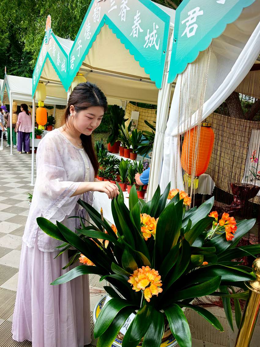 “蘭香雅境”文藝體驗區:19個展位,匯聚20余個品種2000余株精品君子蘭,其中不乏,短葉、技師、和尚、圓頭、油匠等名品構筑起植物美學矩陣與中式造景相映成趣。朵朵綻放的君子蘭,如同時光長河中不滅的燈火,映照城市從歷史深處汲取力量、走向嶄新未來的堅定步履。