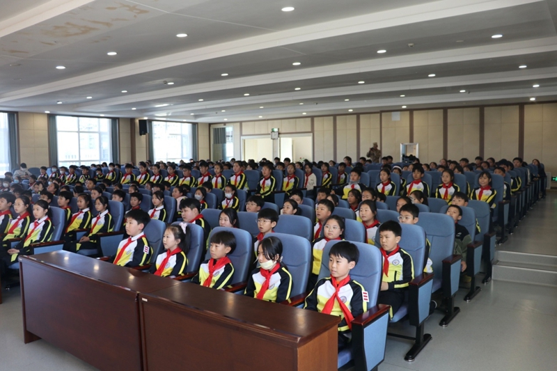 當狼牙山五壯士面對懸崖絕壁毅然縱身跳崖的視頻片段播出時,整個禮堂瞬間陷入寂靜。學生們個個屏息凝視,小臉上寫滿凝重,讓在場師生深刻體悟到革命先烈“捐軀赴國難,視死忽如歸”的崇高氣節。在國防科技科普環節,教員們用通俗易懂的語言,不僅孩子們了解了我國國防實力的跨越式發展成就,更增強了民族自豪感與自信心。