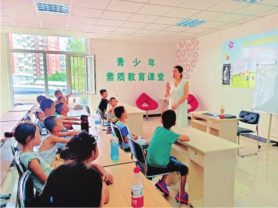 夏日里,长通街道清真寺社区开展青少年素质课堂,为辖区居民服务。(记者马贺摄)