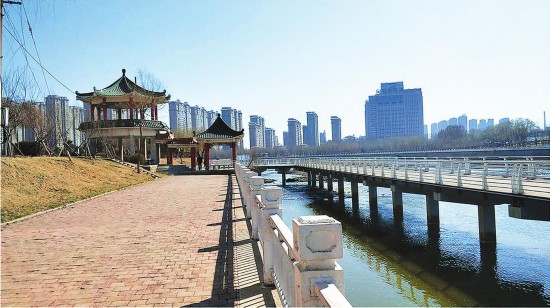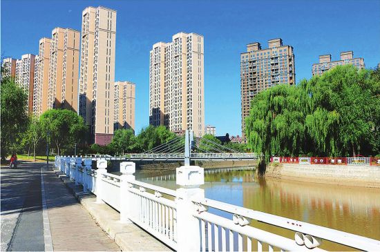 长通街道辖区背靠伊通河,河畔高楼、绿树、小桥尽有。(记者马贺摄)