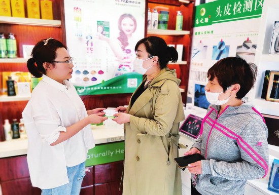 永宁路社区“三长”联动服务居民,辖区企业爱心“反哺”,送上慰问卡。(记者马贺摄)