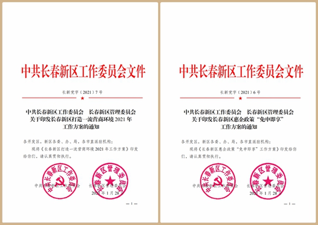 2021年,长春新区聚焦关键环节,加快推动优化营商环境各项工作提档升级,围绕《长春新区打造一流营商环境2021年工作方案》和《长春新区惠企政策“免申即享”工作方案》,明确“任务书”和“施工图”,以“升级版”营商环境激活经济发展新动能。