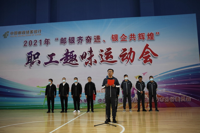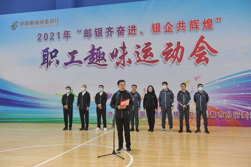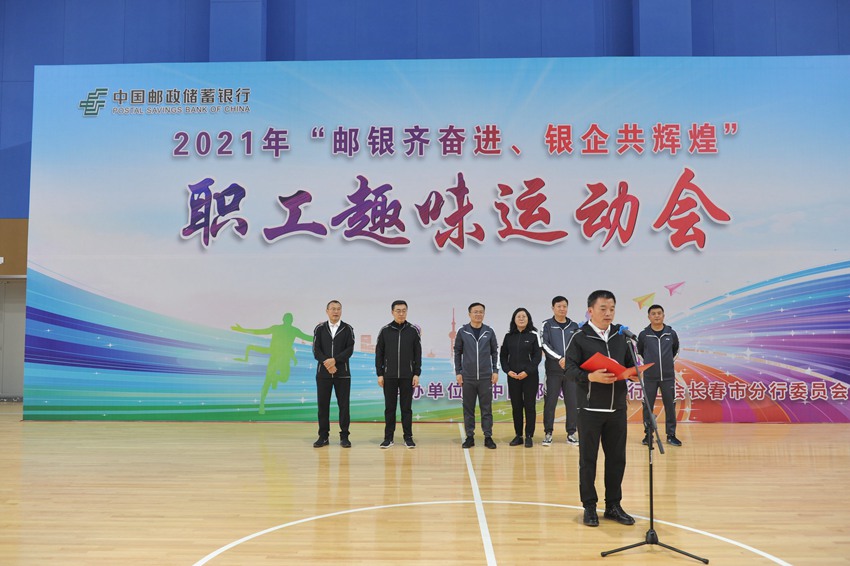 开幕式上,邮储银行长春市分行行长张天晓致开幕辞,阐释了本次邮银携手举办本次运动盛会的深远意义,邮储银行的根在邮政,血脉相通、荣辱与共,携手活动不仅增强邮银双方广大干部职工的凝聚力和向心力,锻炼职工强健的体魄,积极推动企业文化建设,更进一步彰显了邮银一家的和谐氛围,是双方“共举大旗、共享资源、共创未来”理念的又一实践。邮政公司长春市分公司副总经理李宏伟在致辞中强调,通过本次趣味运动会,全体员工能在竞技中体验拼搏,在趣味中感受快乐,昂扬向上、奋发有为,共同创建长春市邮储银行和长春市邮政分公司的美好明天。