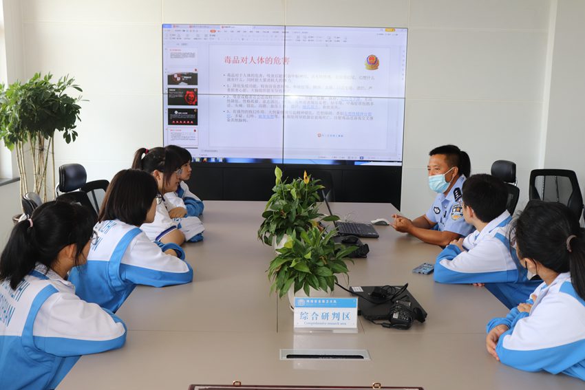 为加强在校学生的毒品预防教育,进一步丰富高中学生暑期社会实践活动内容,结合当前正在开展的夏季治安打击整治“百日行动”,近日,敦化市公安局禁毒大队邀请敦化市实验中学的学生代表三十余人走进警营,让他们近距离感受了一堂生动的禁毒知识教育课。