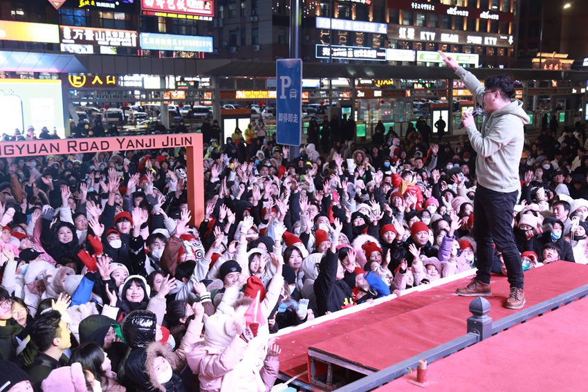 连日来,“舞动青春 热‘雪’延边2023—2024延边冰雪旅游欢乐时刻”活动现场好戏连连,热情好客的延边不仅将DJ舞台搬到了延大网红墙对面,与远道而来的游客共同分享延边的青春活力,还邀请部分县(市)文化馆演员一同助阵,上演了一场场精彩绝伦的民俗文化演出,在冬日里掀起了“青春+民俗”的文旅新浪潮。