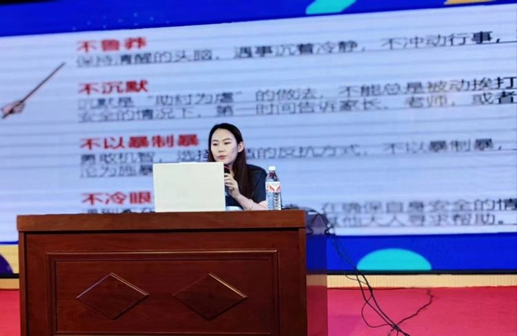 此次活动聚焦未成年人预防校园暴力及《中华人民共和国家庭教育促进法》相关内容。在预防未成年人校园暴力的宣讲环节,营城子法庭干警结合生动的案例和详实的数据,向学生们阐述了校园暴力的危害性以及预防措施,强调校园暴力不仅仅是身体上的伤害,更包括心理和精神层面的摧残。同时呼吁学生们要勇敢站出来,对校园暴力说“不”,并学会寻求帮助和保护。