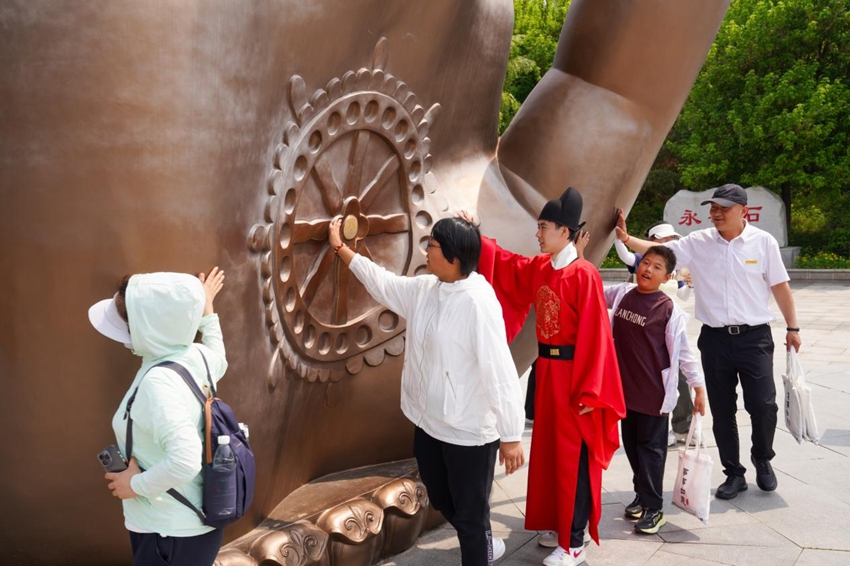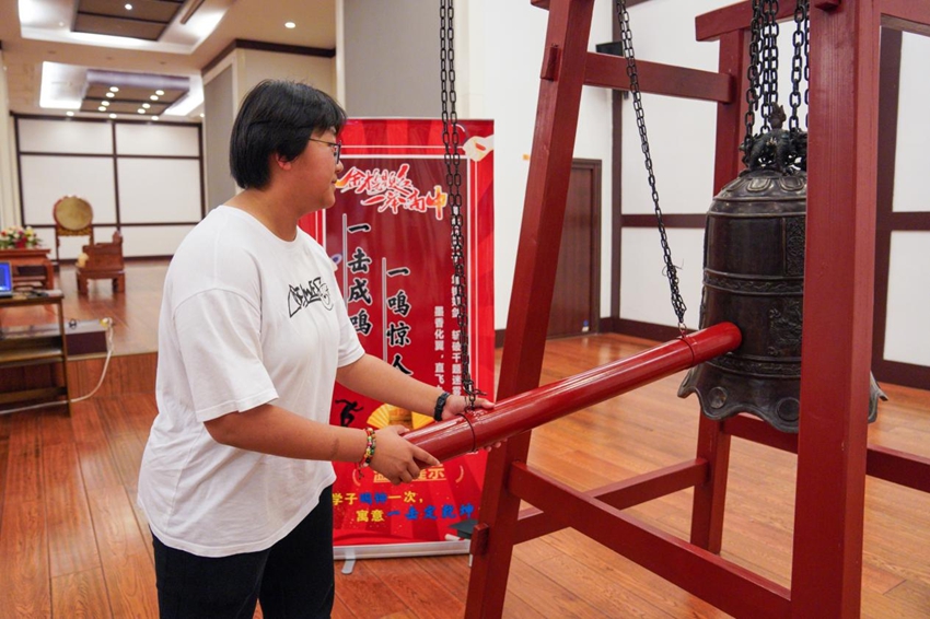 活动首日,众多学子及家长满怀期待来到六鼎山,景区贴心为每位学子发放包含帆布袋、钥匙扣、吉祥牌和丝带的登高奖品。学子们乘坐寓意美好的985、211号观光车前往圣莲湖西岸,登上“一帆风顺”主题游船,在登科长廊庄重悬挂吉祥牌,寄托“金榜题名、旗开得胜”的美好期许,“步步积跬步・层层达云程”登高,每一步攀登都充满坚定,百人撞“状元钟”,钟声阵阵,寓意“一鸣惊人”。