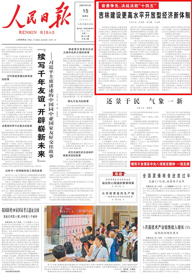 人民日报头版关注:吉林建设更高水平开放型经济新体制