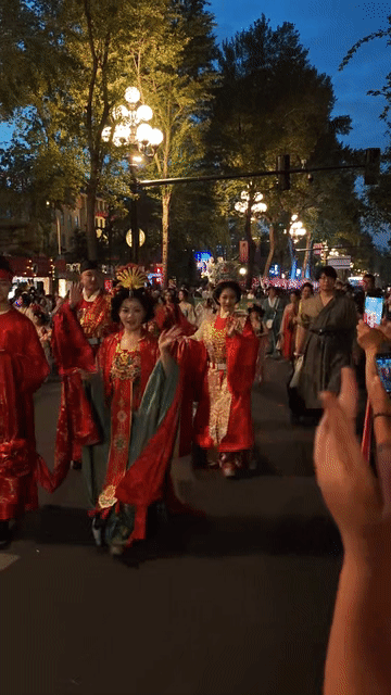 汉服小哥哥小姐姐翩然而至,衣袂翻飞间和路人互动,瞬间穿越到古风场景。