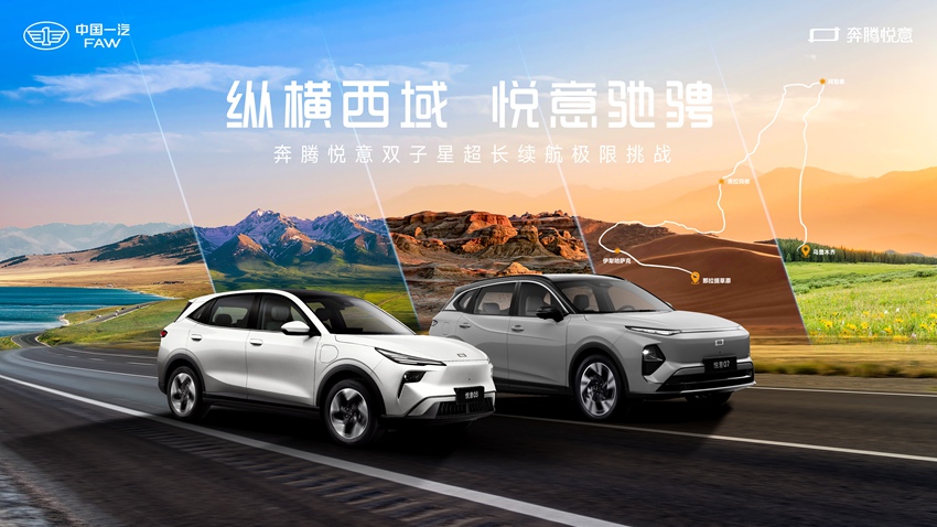 凭借对用户需求的精准把脉,一汽奔腾新品上市结合创意营销举措,迅速引爆市场热度。奔腾小马通过直播形式进行线上种草,并赠饮知名奶茶古茗,有效触达年轻圈层。悦意双子星则在上市前以“纵横西域·悦意驰骋”82小时不间断长测直播“蓄水引流”,在真实路况中验证扎实续航实力,以场景化实证强化用户信任。